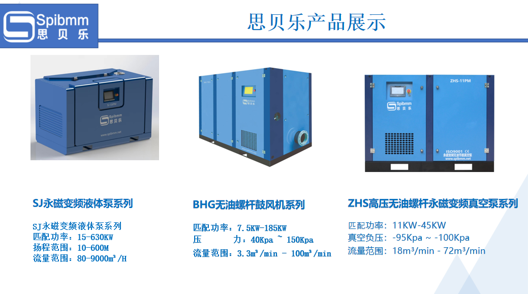 广东思贝乐能源装备科技有限公司是国内一线技术水平的微油、无油、变距永磁变频真空泵、鼓风机、引风机、液体泵的生产厂家、是专注于设计、研发、生产、市场开发,售后服务于一体的企业,“高品质”“高效率”是思贝乐的代名词!
