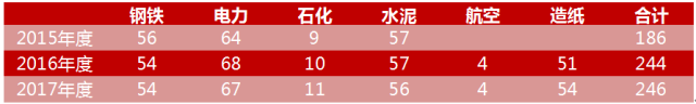 如表1所示,除自2016年度开始将航空和造纸纳入碳交易范围外,2015-2017年度各行业的控排企业数量基本上变化不大 鼎盛注册,变化相对较为明显的是,2017年度与2016年度相比增加了3家造纸控排企业。