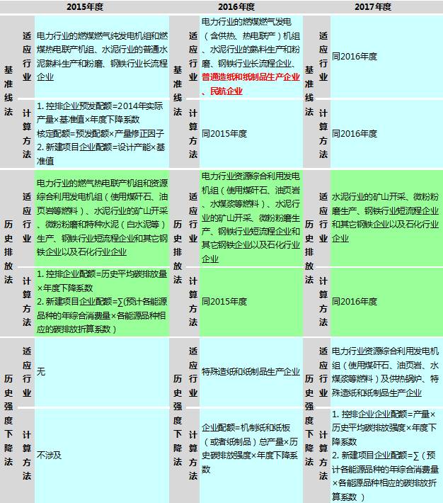 表2:2015-2017年度广东碳排放配额分配方法比较