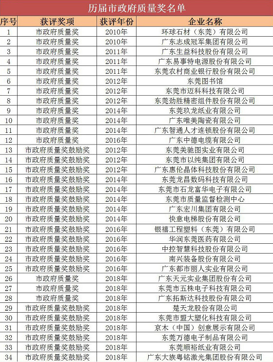 《东莞市人民政府关于2018年东莞市政府质量奖及鼓励获企业的通报》日前在东莞市政府官网正式发布,意味着这项两年评选一次的东莞最高质量奖项正式出炉 鼎盛平台。