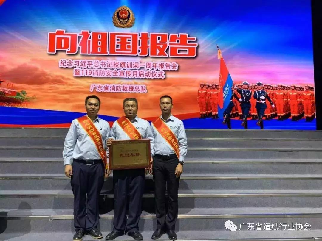 2019年11月6日,受广东省消防救援总队邀请,亚太森博(广东)纸业有限公司应急管理部副总王文,安全部经理陈涛,消防工程师周耀龙赴往广州,参加“广东省消防救援总队纪念总书记授旗训词一周年报告会暨119消防宣传月启动仪式”,会上表彰了一批2019年度广东省热心消防公益事业先进单位和个人。