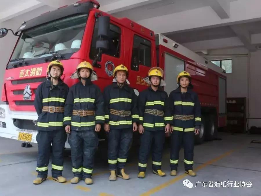 亚太森博(广东)纸业有限公司一直以来都对消防安全工作高度重视。为了保障公司消防安全,在地方政府部门的关心和公司消防安全委员会大力支持下,该公司专门划拨了资金于2010年建起了一支专职消防队,并先后投入数百万元建立综合企业消防站以及配备大批应急抢险救援物资器材,为构筑坚强消防壁垒提供了坚实的基础。在消防安全委员会主任洪庆隆的坚强领导下,在各消防安全委员会常务副主任的大力支持下,在应急管理部副总王文的带领下,专职消防队严格按照现役消防队标准进行军事化管理和训练,还特别针对造纸企业的特点,强化火情侦察、人员疏散、消防供水、通信联络等灭火救援行动重要环节的训练;同时消防队员进行“网格化”管理,每日进行防火巡查,定期组织消防专项大检查,已形成一支处警专业化、巡查常态化的消防队伍。