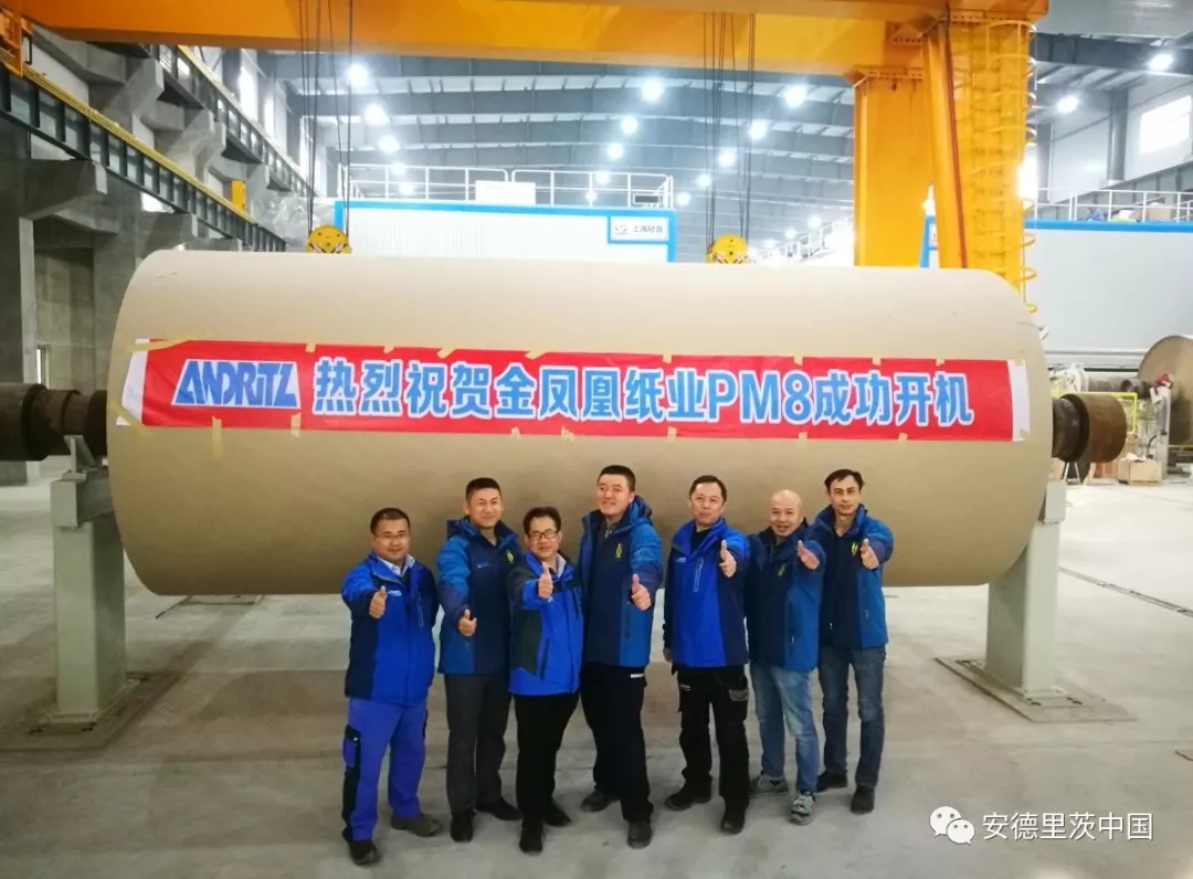 2017年12月 鼎盛平台,国际技术集团安德里茨交付给金凤凰纸业二期项目的第一台纸机PM8 成功开机。