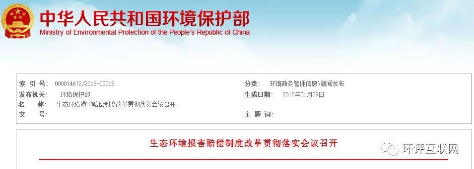 环境保护部1月9日在京召开贯彻落实生态损害赔偿制度改革方案视频会,旨在全面贯彻党的十九大精神 鼎盛平台app,大力推进生态环境损害赔偿制度改革。