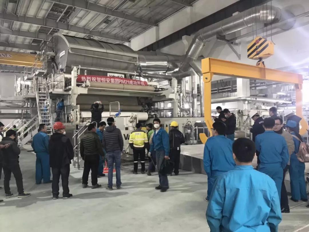 1月16日,恒安(山东)四期11万吨生活用纸项目第一台卫生纸机成功开机出纸。该纸机是恒安集团的第21号纸机,引进瑞典维美德先进造纸设备,采用备浆短流程工艺,设备节能环保,自动化程度高。纸机净纸幅宽5600mm,设计车速1900m/min。生产原料采用国外进口商品木浆,年产高档生活用纸5,5万吨。 鼎盛平台。