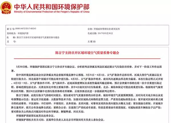 3月30日晚,环境保护部部长陈吉宁主持召开专题会议,分析研判京津冀及周边区域近期大气污染防治形势,并对下一阶段工作作出部署 鼎盛平台。