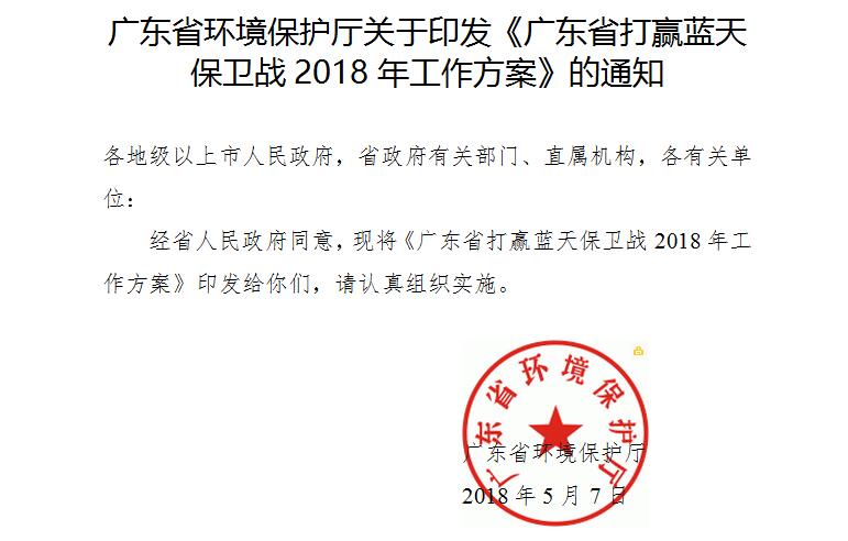广东省环境保护厅关于印发《广东省打赢蓝天保卫战2018年工作方案》的通知