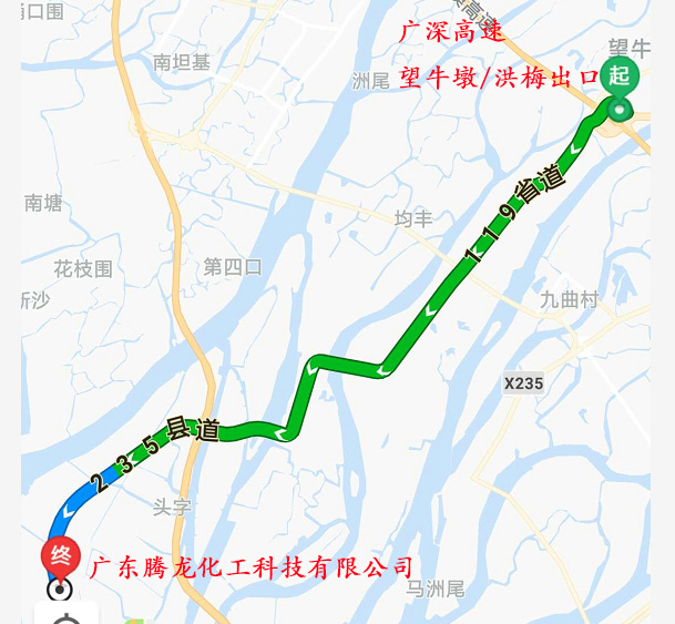 自驾车路线:从G4京港澳高速(广深高速)望牛墩、洪梅出口出——往洪梅镇方向进入119省道——沿着119省道直行6.3公里右转进入桥东路——直行1.3公里左转进入244县道 ——直行1.4公里右转进入立沙大道(235县道)——直行6公里掉头到达目的地(目的地在左侧)