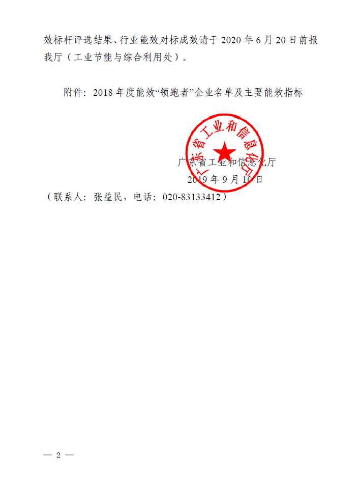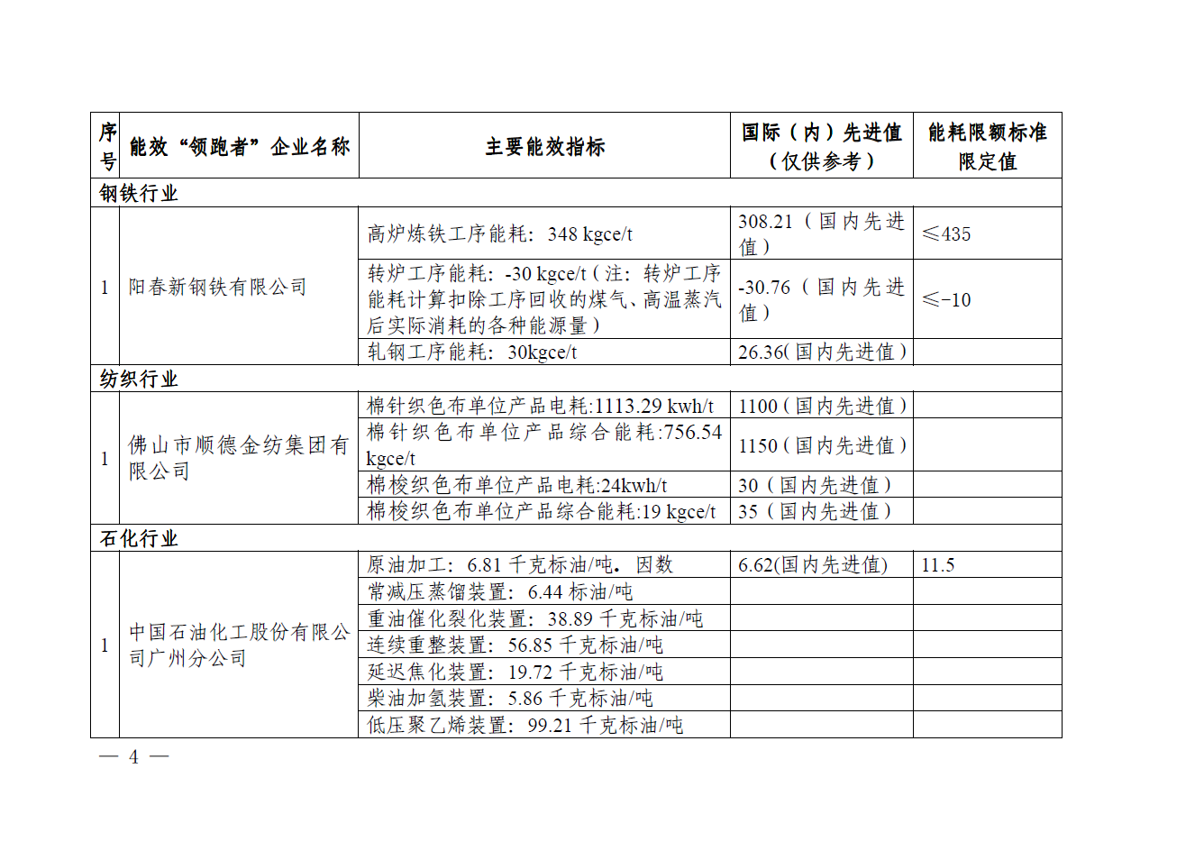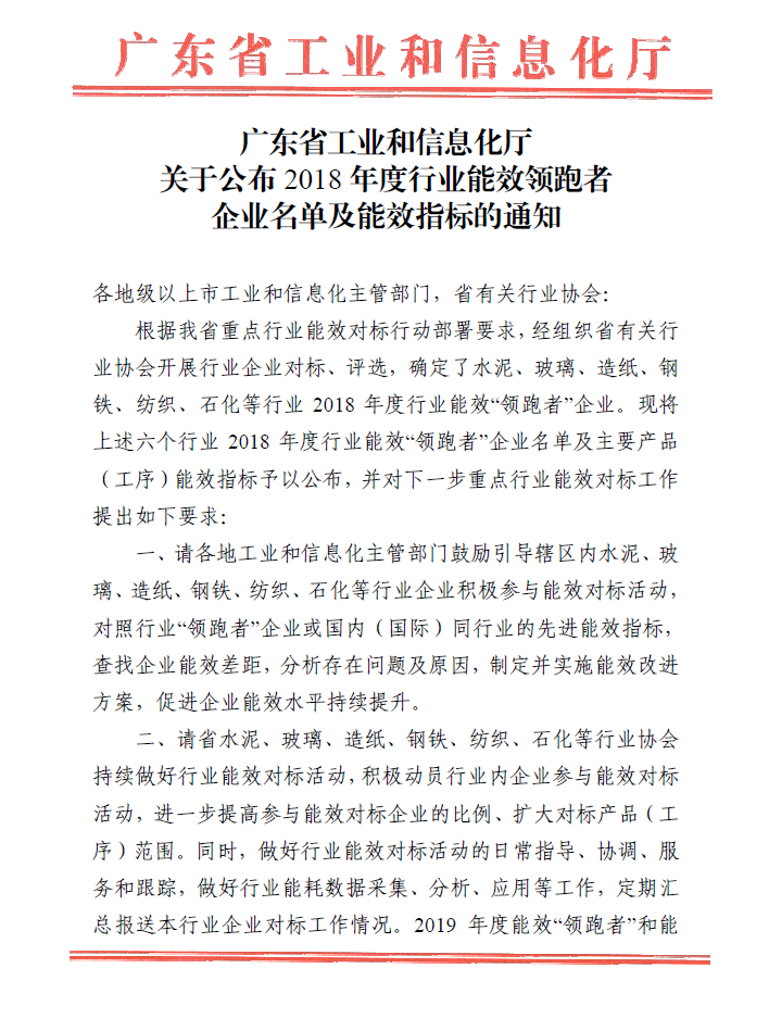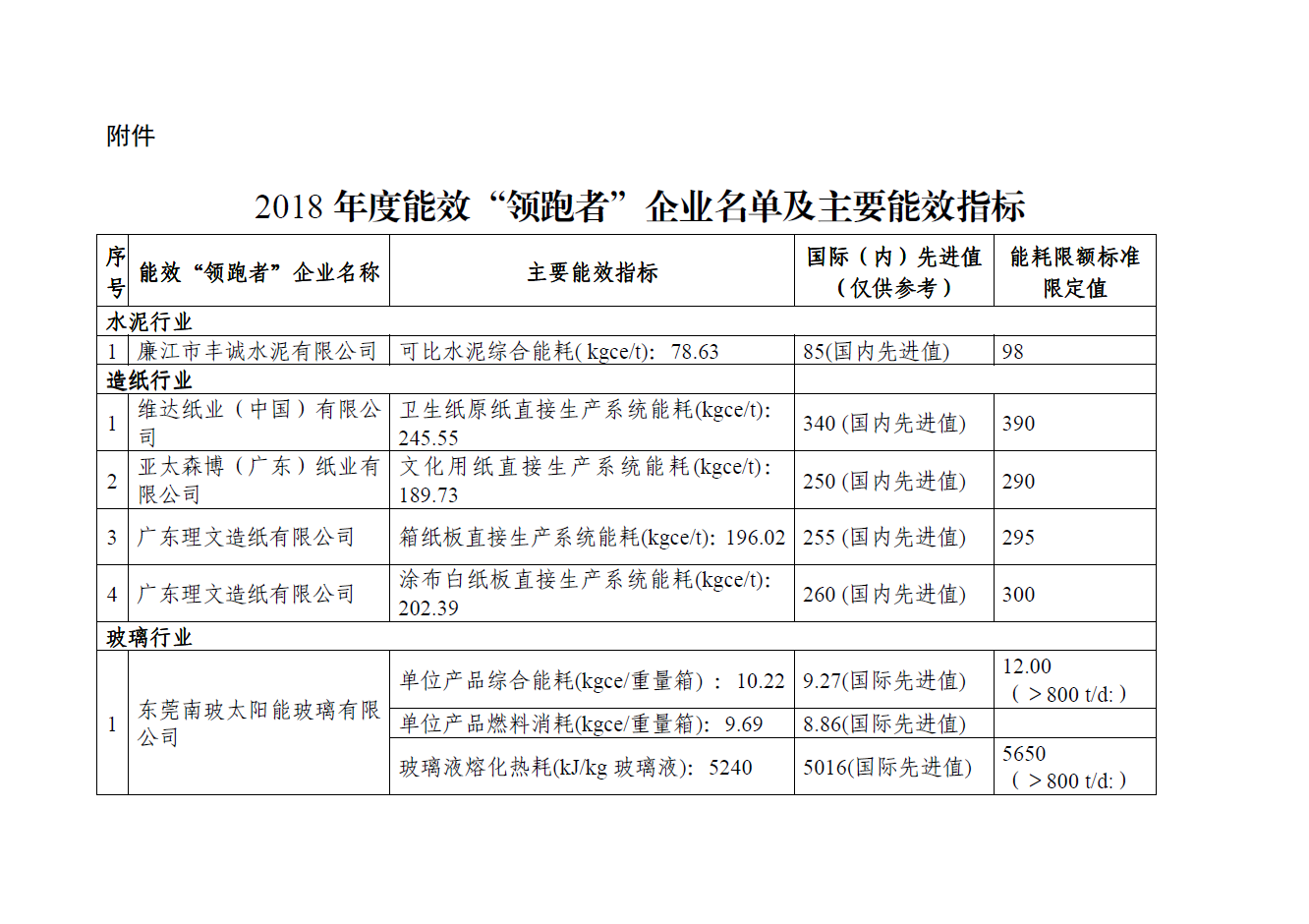 广东省工业和信息化厅关于公布2018年度行业能效领跑者企业名单及能效指标的通知