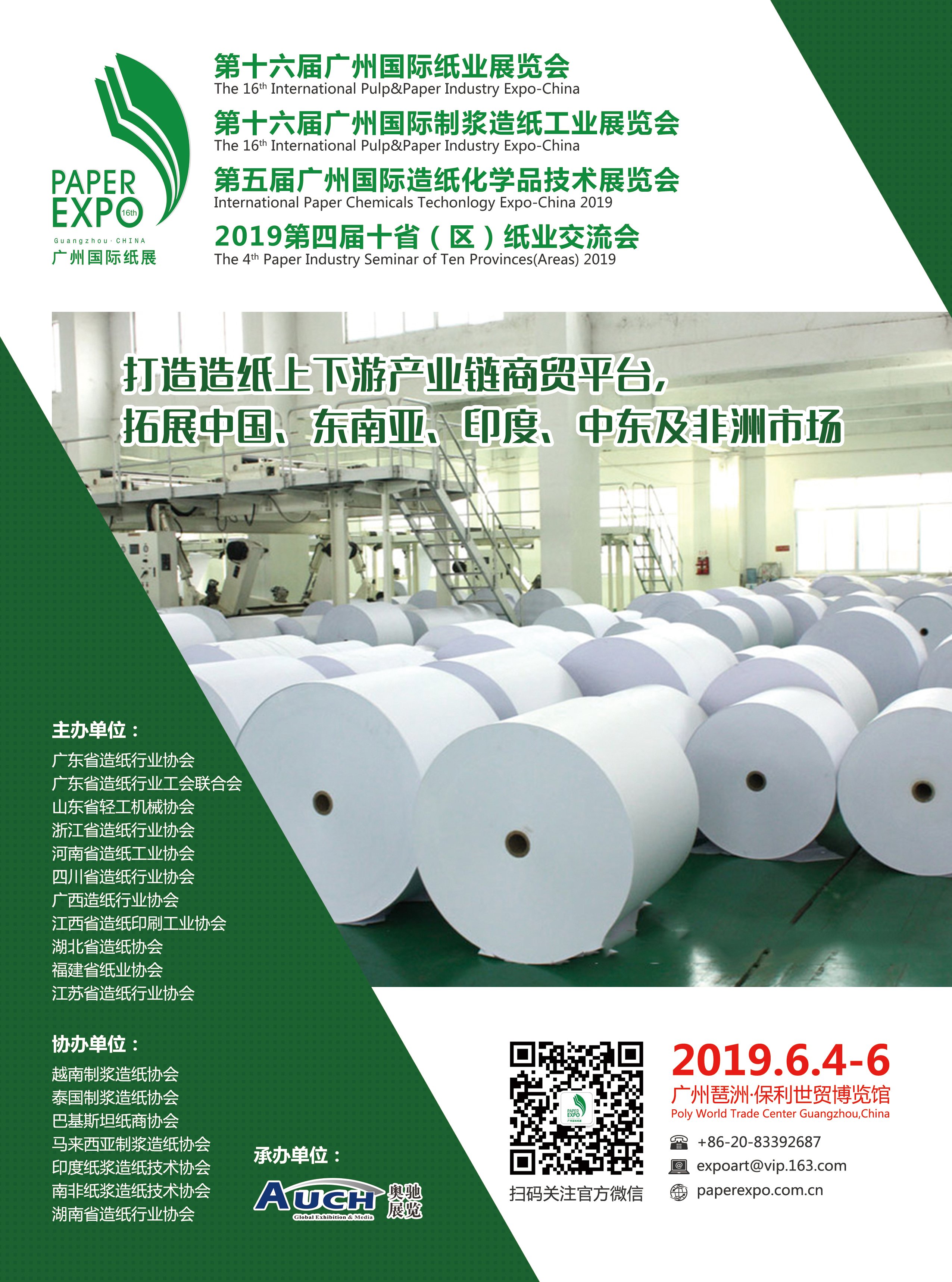 作为面向国内外市场的造纸行业盛会——“第十六届广州国际纸展”将于2019年6月4日-6日在广州琶洲保利世贸博览馆2号馆隆重召开,本次展会设立纸业展,制浆造纸工业展,造纸化学品展等专题展,同时首设“国际造纸进口展区” 鼎盛官网,将重点邀请来自南美,东南亚,印度,中东及非洲地区的骨干纸浆厂,造纸企业前来展出,预计本届展会将汇集10多个国家和地区的逾200家企业联合参展,将全面展示各种纸张(文化办公用纸,包装印刷用纸,工业用纸,特种纸等),制浆造纸装备及相关配套产品,造纸化学品,仪器仪表,环保设备,卫生纸机及后加工设备等造纸上下游产业链的最新产品和先进技术。