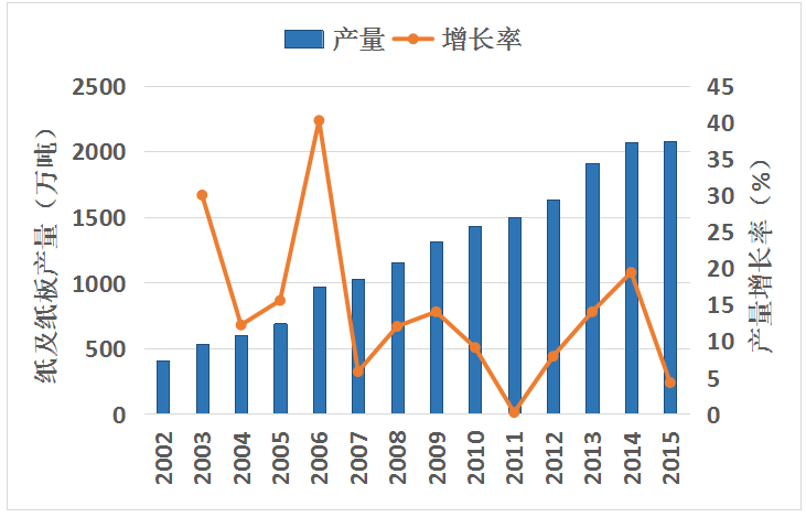 图2 广东省纸及纸板产量及增长率