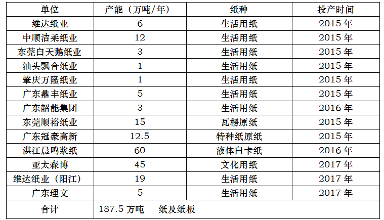 表2:2015-2016年9月广东省新建. 改建 鼎盛平台. 在建的主要造纸项目.