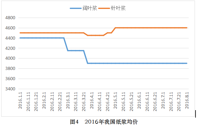 图4 2016年我国纸浆均价
