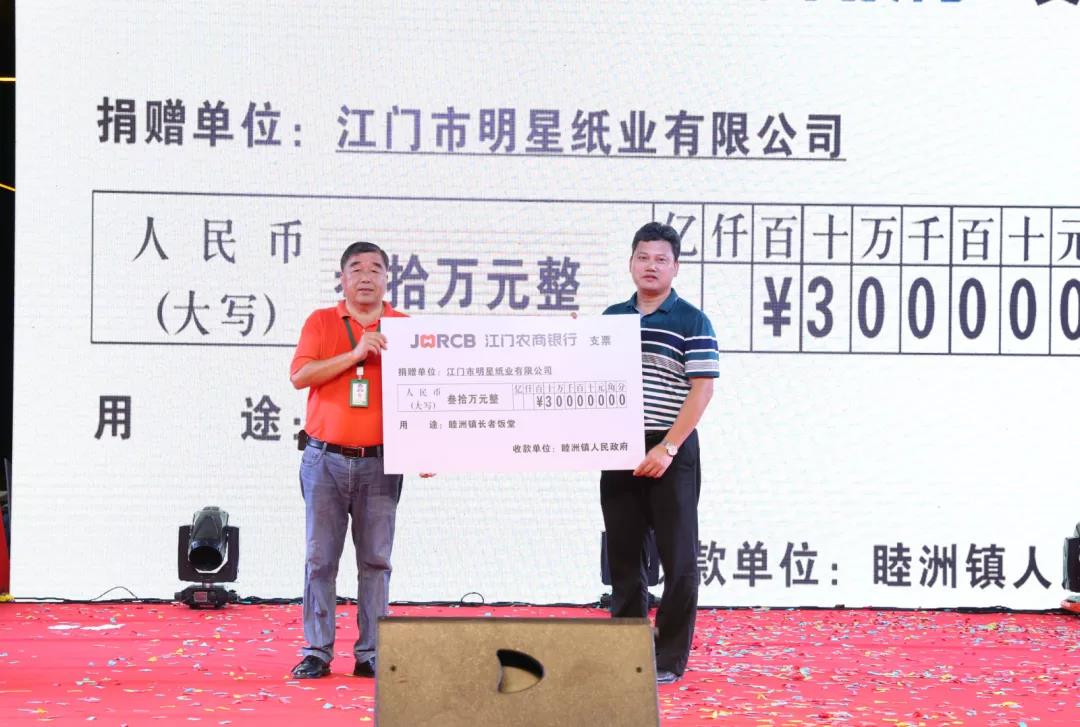 ▲明星纸业向睦洲镇长者食堂捐款30万元