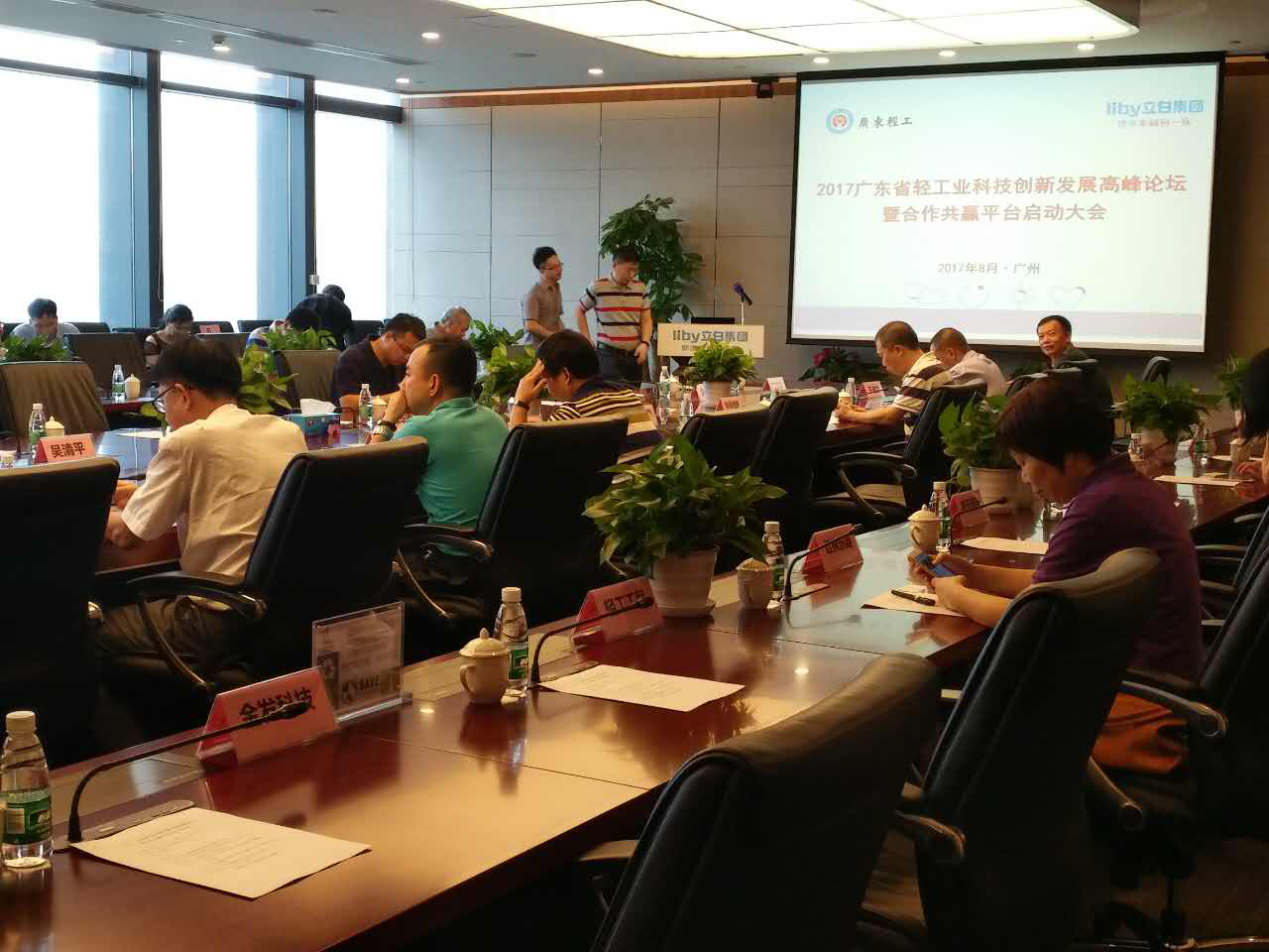 2017年8月2日下午,由广东省轻工业联合会举办的“2017年广东省轻工业科技创新发展高峰论坛暨合作共赢平台启动大会议程”在广州市立白集团总部18楼召开,省内政府有关部门领导、行业专家、高等院校、行业协会及企业代表参加了本次会议。受广东省轻工业联合会的邀请,鼎盛平台会长翁卓与秘书长陈竹出席了本次会议。