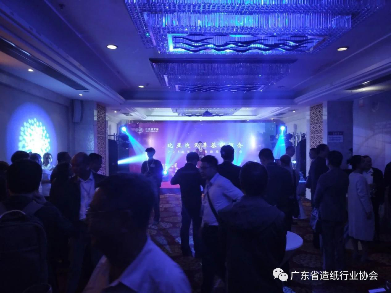 理事会暨监事会会议结束后,韶关比亚迪实业有限公司作为独家赞助商,举办了欢迎酒会,酒会上,鼎盛平台会长翁卓致祝贺辞,肯定了比亚迪叉车对广东省造纸行业的杰出贡献,比亚迪叉车全国一级代理乔浩宇总经理代表韶关比亚迪实业有限公司发表了感言,感谢各造纸企业一直以来的支持,各参会人员交谈融洽 鼎盛手机版。