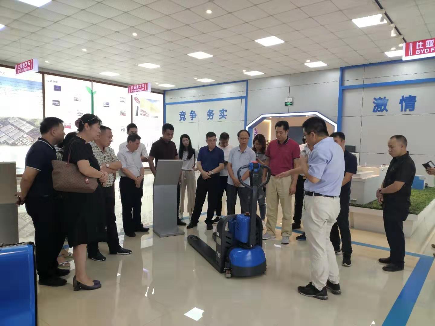 比亚迪叉车生产基地何泽厂长带领考察团参观展厅
