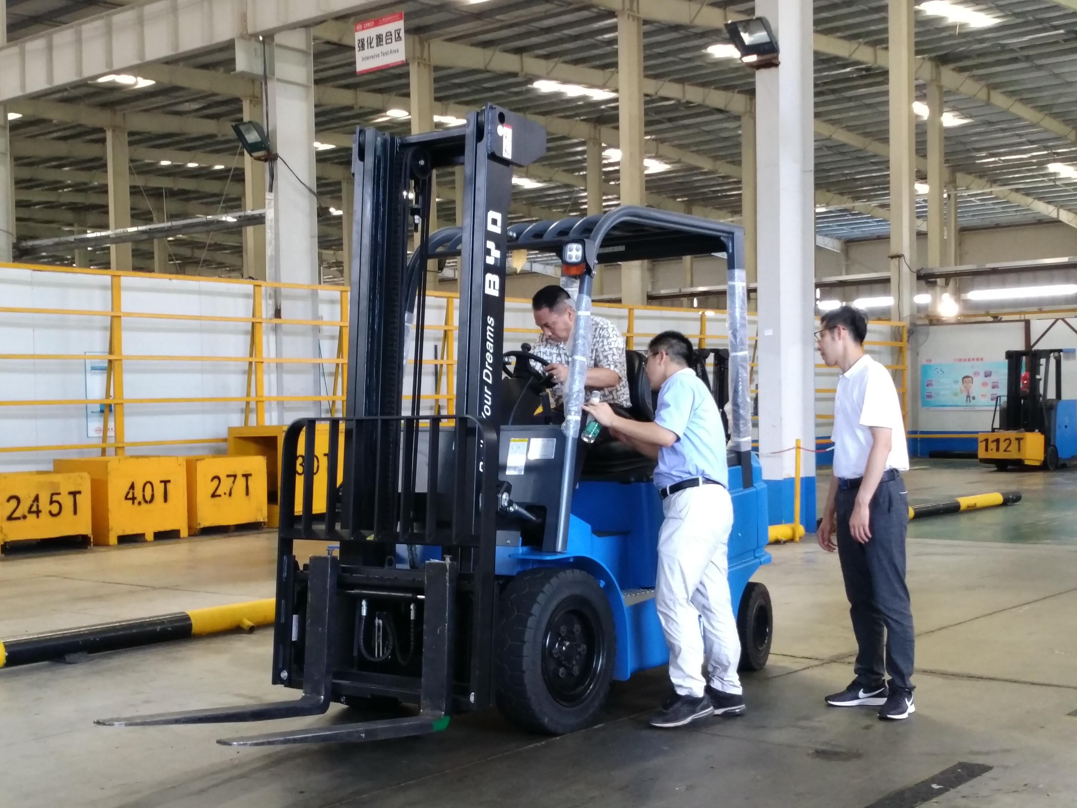 随后,考察团一行来到叉车测试车间 鼎盛网页版,并让考察团成员试驾比亚迪新能源叉车,切身体验新能源叉车与传统叉车的区别。