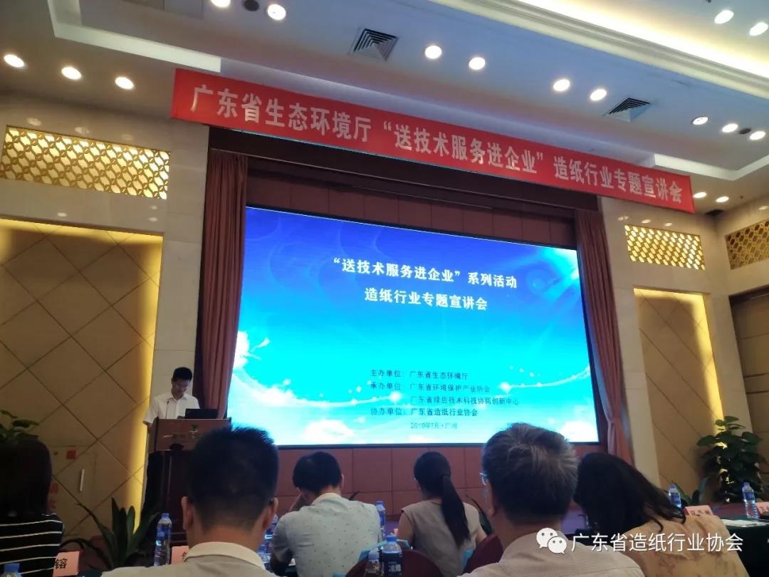十三、7月19日,广东省生态环境厅在广州召开“送技术服务进企业”系列活动-造纸行业专题宣讲会,鼎盛平台作为协办单位参加本次会议,陈竹秘书长在会上介绍了造纸行业现状及绿色发展趋势。副会长单位东莞建晖纸业有限公司和亚太森博(广东)纸业有限公司作为典型企业代表在宣讲会上发言,分享污染治理设施的工艺设计及建设运行管理经验。