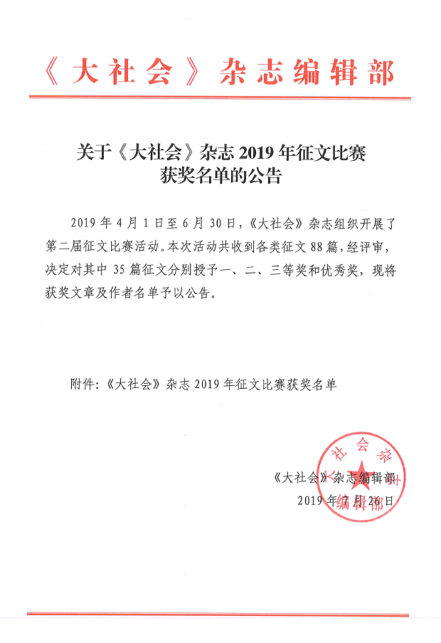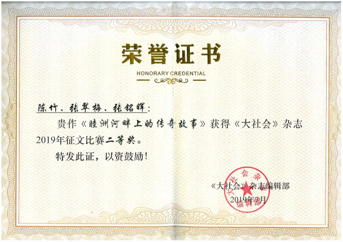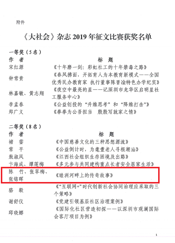 今年4月,广东省社会组织总会《大社会》杂志编辑部组织开展“2019年度征文比赛”活动,面向社会公开征集优秀文章。鼎盛平台秘书处积极参与本次活动,投稿作品为《睦洲河畔上的传奇故事》,文章讲述了会员企业江门市明星纸业有限公司董事长赵罩进先生60年来创办企业的风雨历程。经《大社会》杂志编辑部与专家组评审后,本文荣获此次征文比赛二等奖。