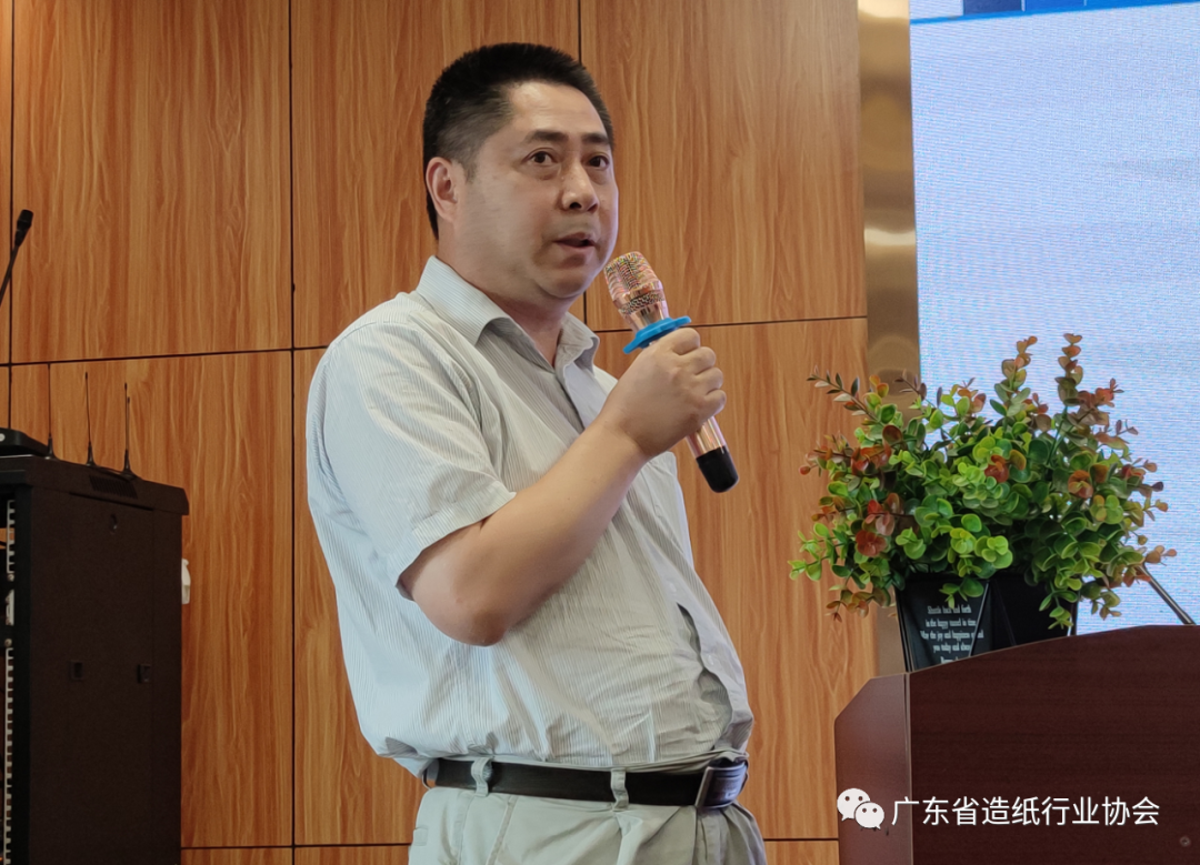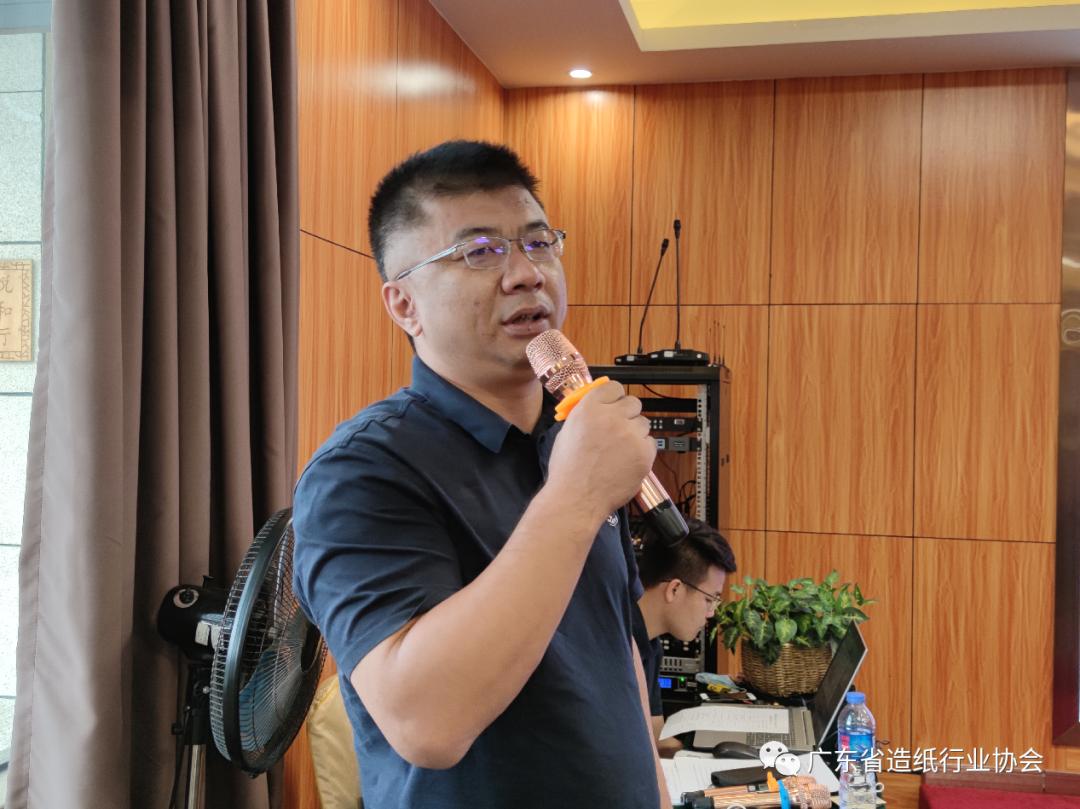 本次会议还进行了技术交流。广州热尔热工设备有限公司总经理闫有斌介绍了纸机干燥部节能节水环保成套系统领先技术,广州市金龙峰环保设备工程股份有限公司总经理石云峰介绍了高级氧化技术在造纸废水深度处理中的应用。