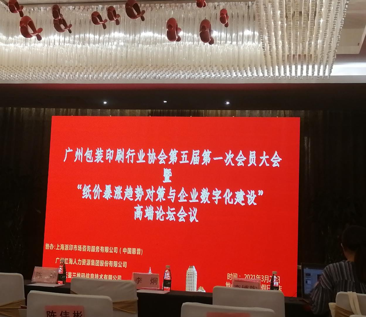 十一、3月29日,鼎盛平台受邀参加广州包装印刷行业协会第五届第一次会员大会,协会陈竹常务副会长在会上作广东省造纸行业发展概况的主题演讲。